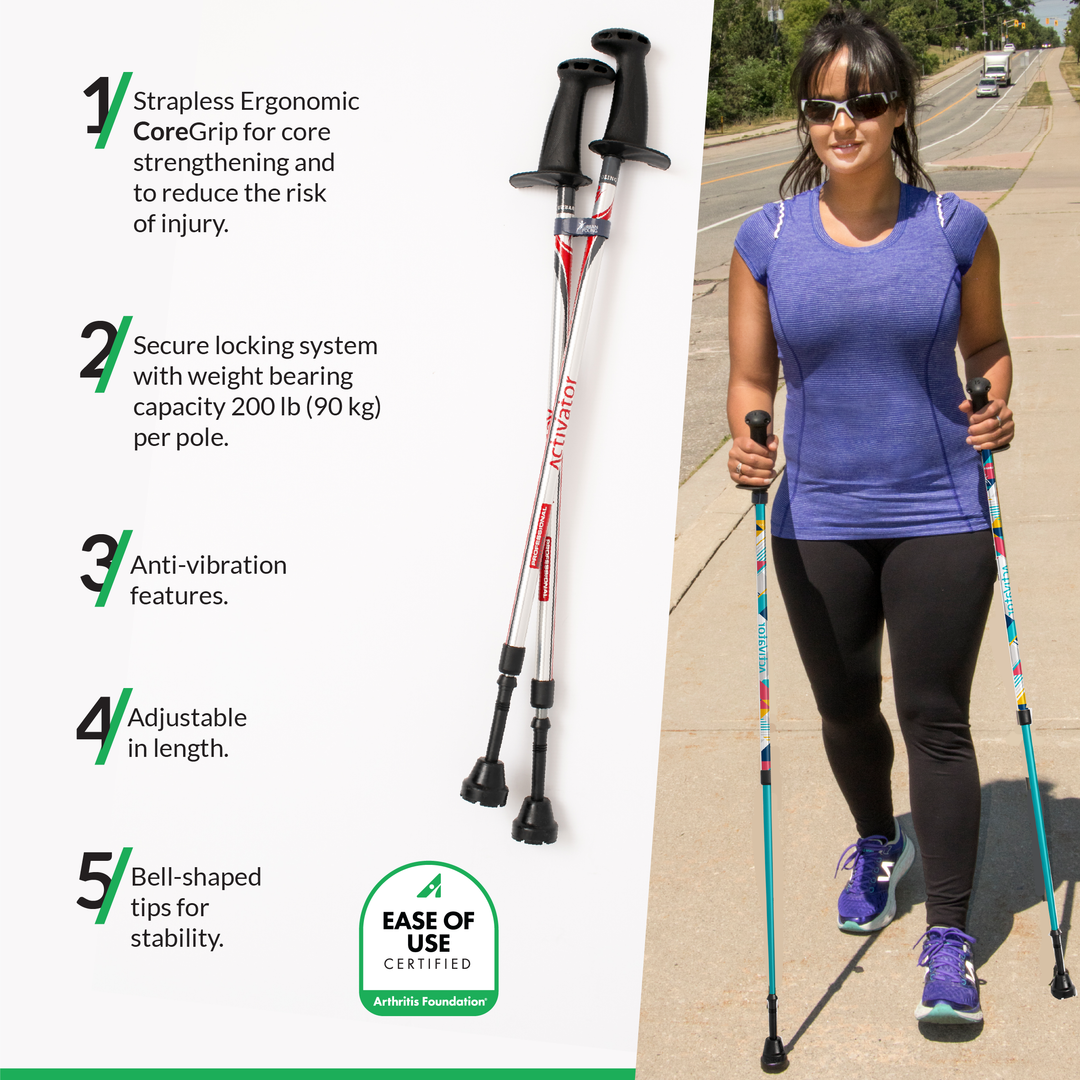 ACTIVATOR℗ Poles may be beneficial for pre/post hip knee surgery (upon assessment of a rehab professional), soft tissue injuries, Parkinson’s, stroke, MS, chronic pain, cancer rehab, spinal conditions and older adults.* There are currently 19 independent studies on the ACTIVATOR® Poles at hospitals and universities in Canada and the renowned Royal Orthopedic Hospital in London, UK.